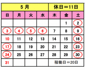 ☆5月の営業と、ゴールデンウィーク期間中のお休みについて